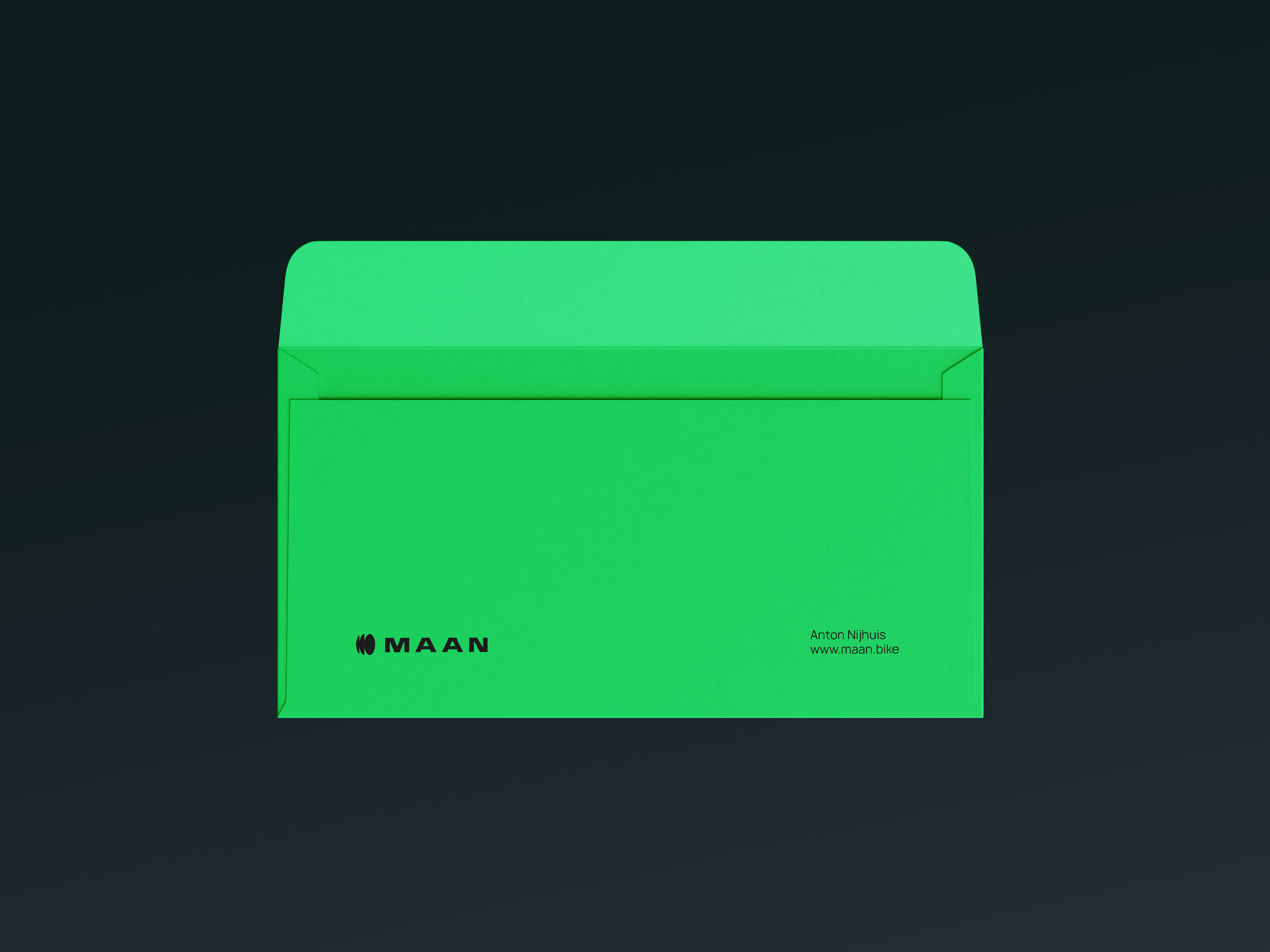 Het ontwerp is helder en zelfverzekerd, passend bij de high-end fietsenmarkt en de kwaliteit en precisie waar Maan Bike voor staat.